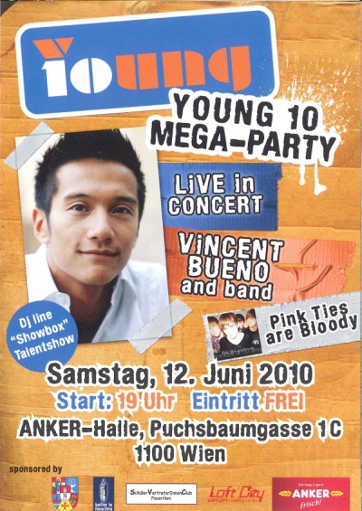 Als Höhepunkt wird „Dancing Star“ und Gewinner der TV-Show „Musical! Die Show“, Vincent Bueno, angekündigt, der sich bei der Party in der ANKER-Halle von einer neuen Seite zeigt: und zwar mit R’n’B-Sound im Gepäck. Auch die Favoritner Newcomerband „Pink Ties are Bloody“ wird ihr Debüt-Album „Remember The Time“ präsentieren.
